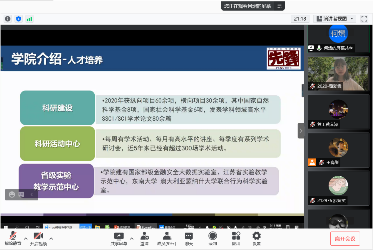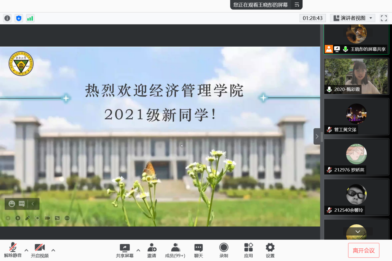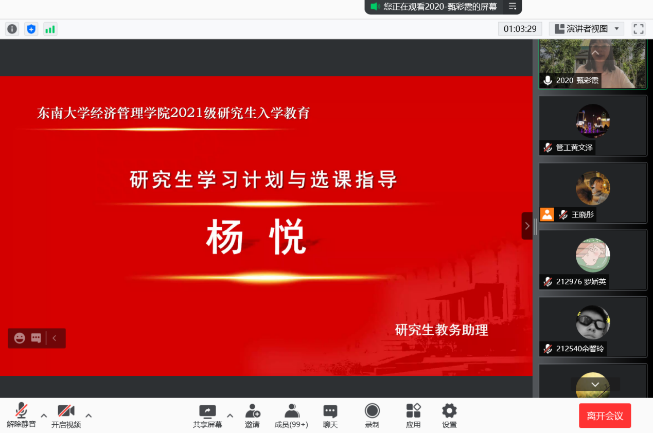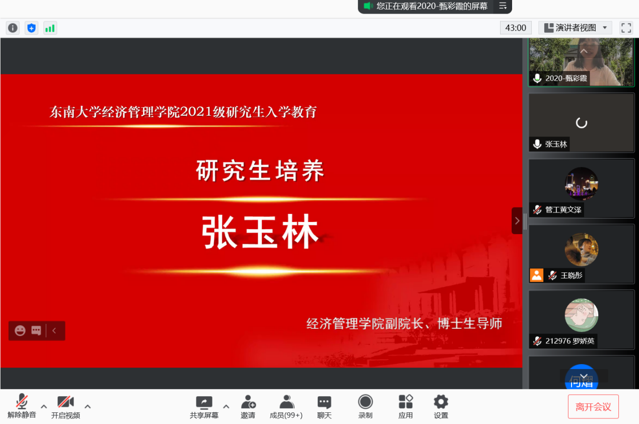 2021年9月10日上午9时,恰逢教师节,永利app-永利平台 研究生新生入学教育如期举行,2021级182位硕士研究生及17位秋季入学的博士研究生在云端与东大经管相约。